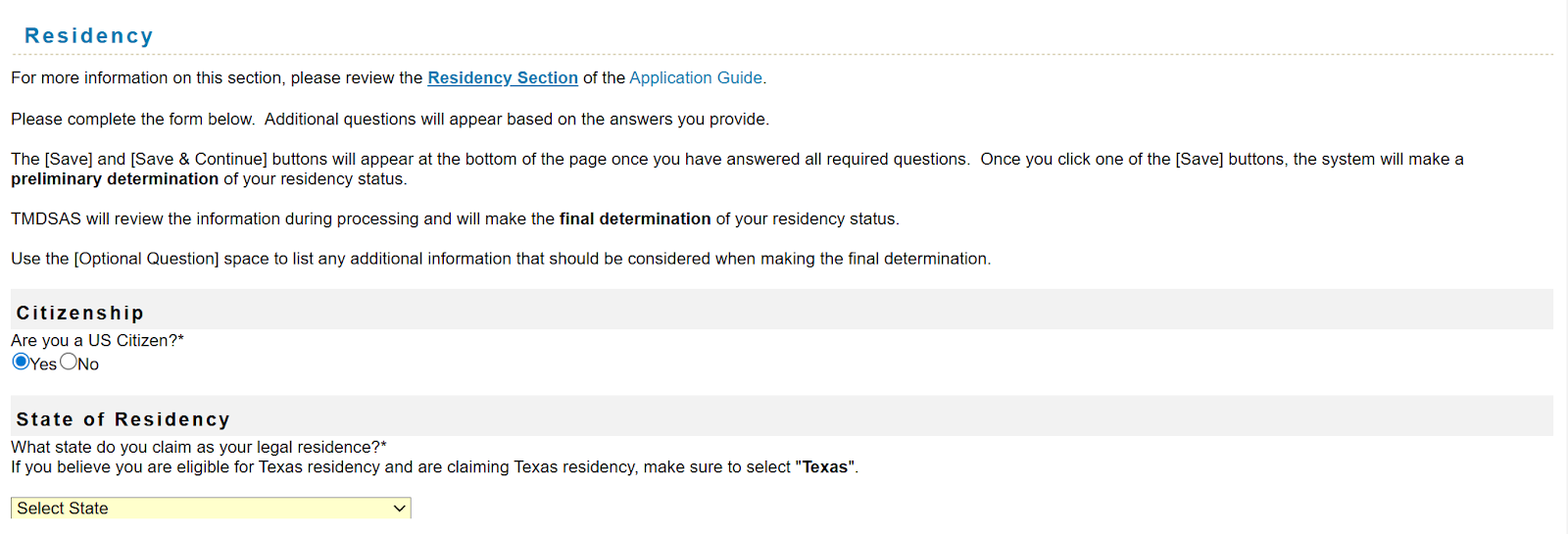 TMDSAS classifies applicants as either Texas residents or non-residents for admission purposes.